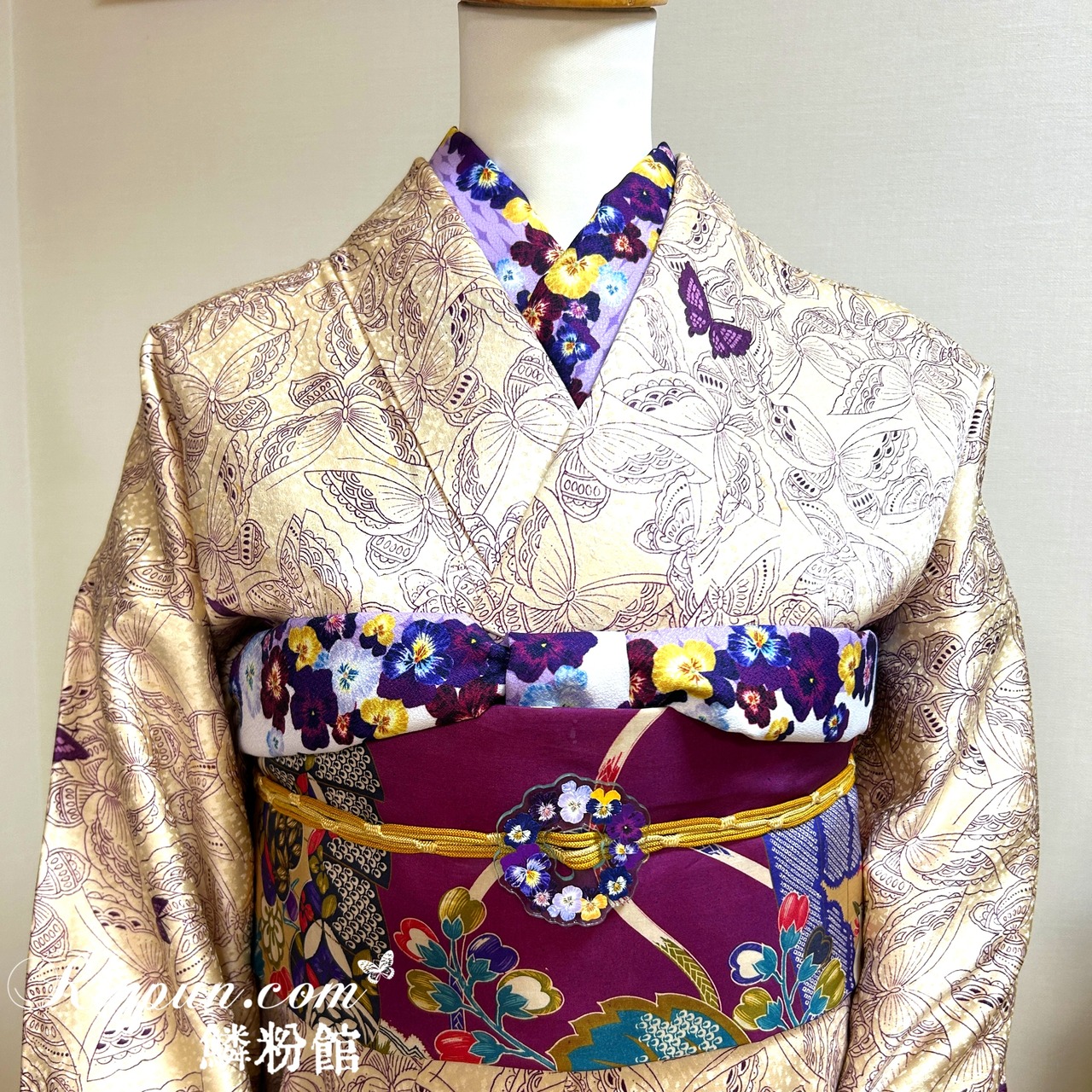 パンジーをふんだんに配置した半襟です。左右で花の大きさが違い、奥行きを持たせて使うこともできます。