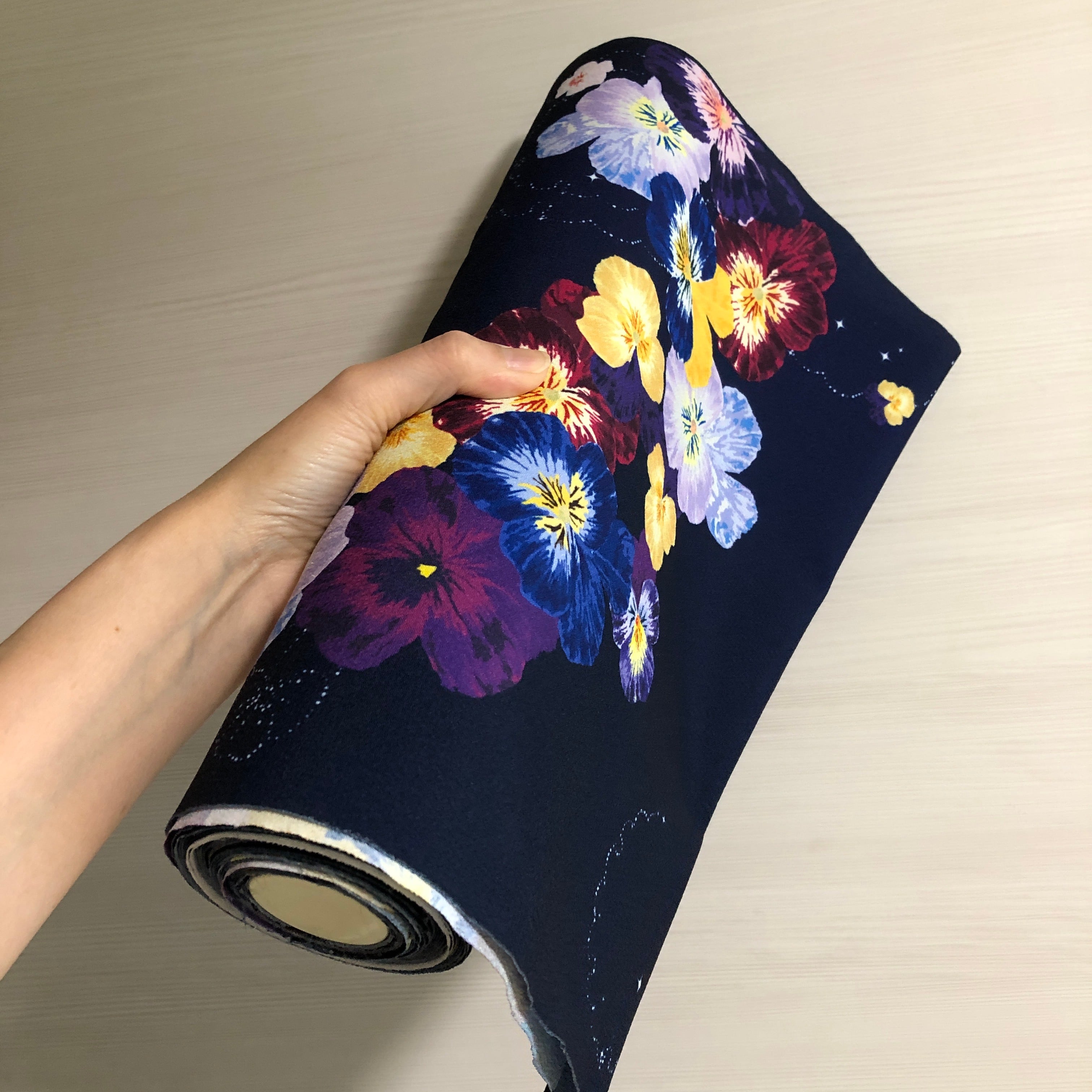 星屑パンジー柄の反物です。